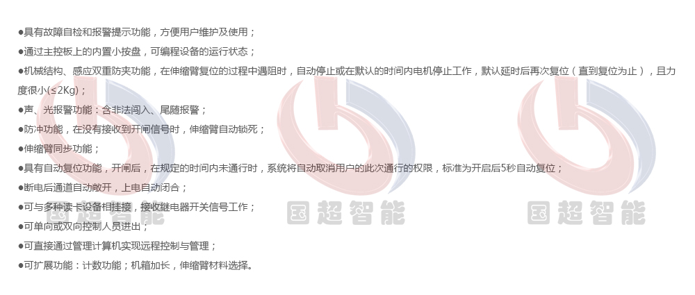 整個(gè)產(chǎn)品外形采用SUS304不銹鋼板沖壓成型,智能翼閘(擋閘)是主要針對(duì)人員通道進(jìn)行智能管理的高科技產(chǎn)品,是智能三輥閘和擺閘的升級(jí)產(chǎn)品,該產(chǎn)品加工精細(xì)、功能齊全、檔次高,主要用于高檔小區(qū)、智能大廈、賓館、地鐵、碼頭、會(huì)所等高檔場(chǎng)所。
