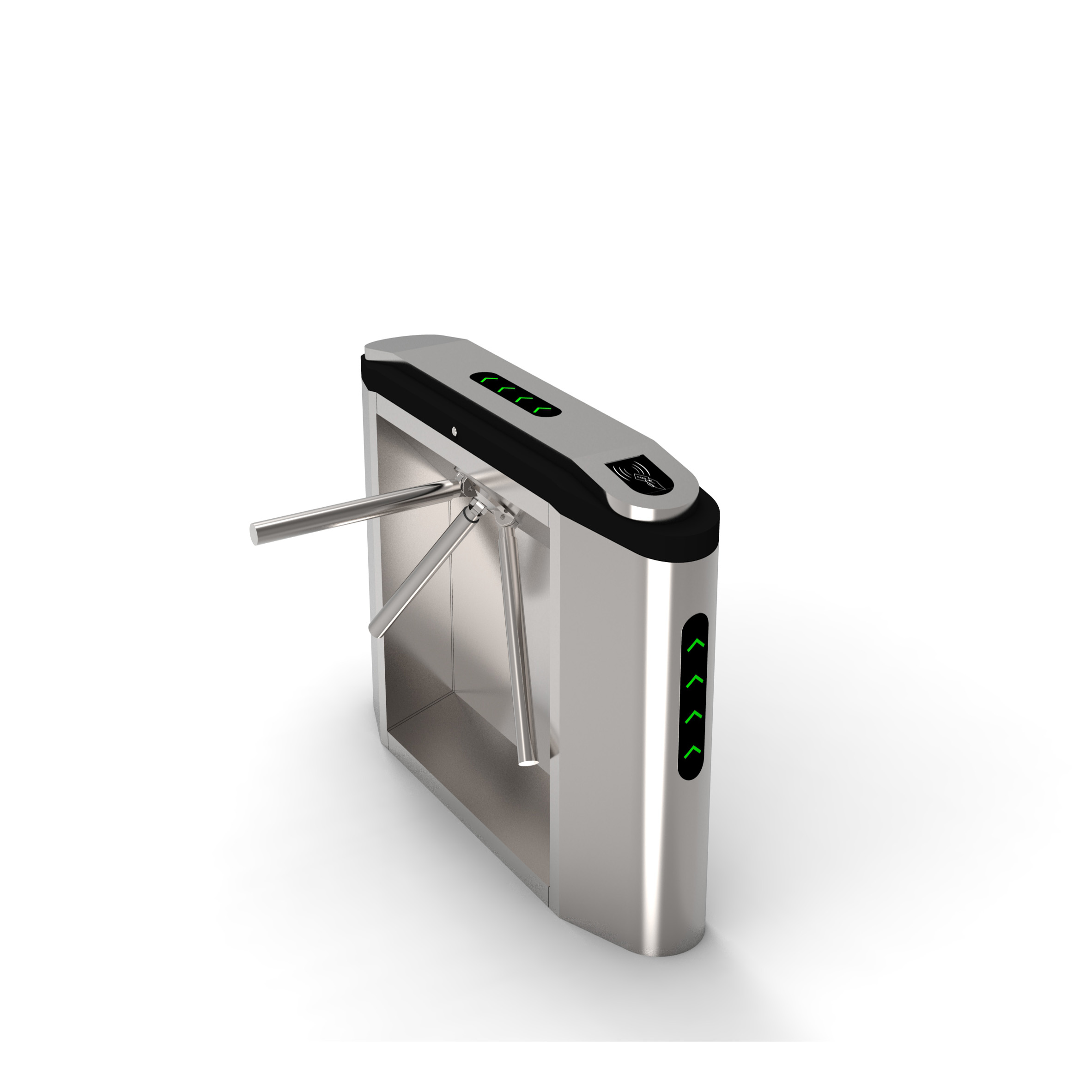 整個三輥閘產(chǎn)品外形采用SUS304不銹鋼板沖壓成型,造型美觀大方,防銹、耐用,能抵抗外力破壞。長方形機箱與通道閘桿構(gòu)成的通道可為出入人員提供有序文明的通行方式,杜絕非法出入,并在緊急情況下快速控制落桿或收桿。
