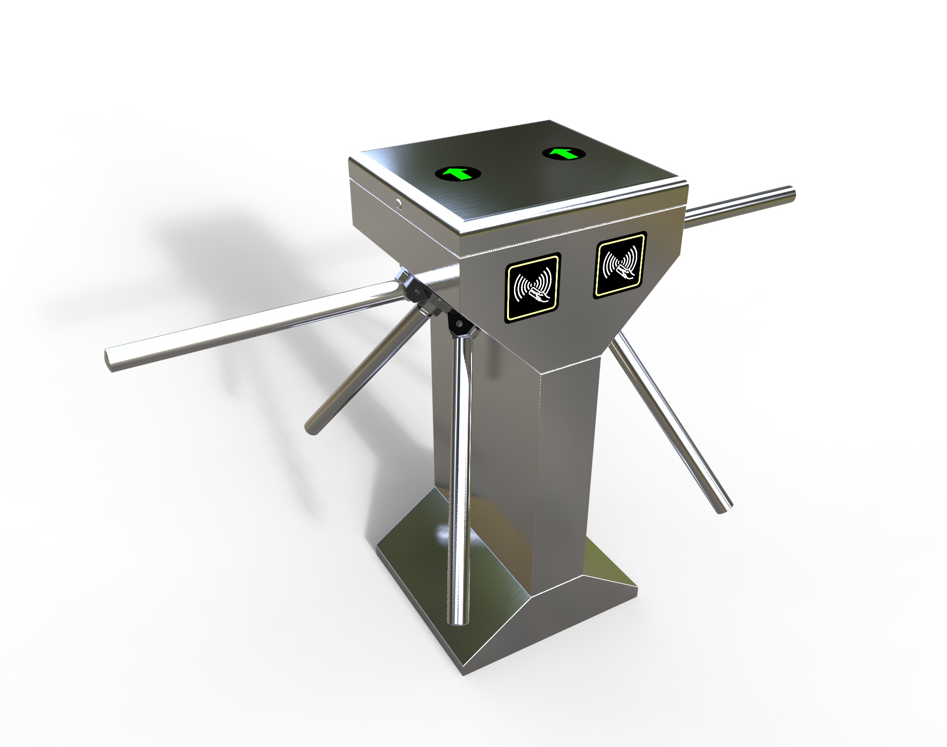 整個三輥閘產品外形采用SUS304不銹鋼板沖壓成型,造型美觀大方,防銹、耐用,能抵抗外力破壞。長方形機箱與通道閘桿構成的通道可為出入人員提供有序文明的通行方式,杜絕非法出入,并在緊急情況下快速控制落桿或收桿。