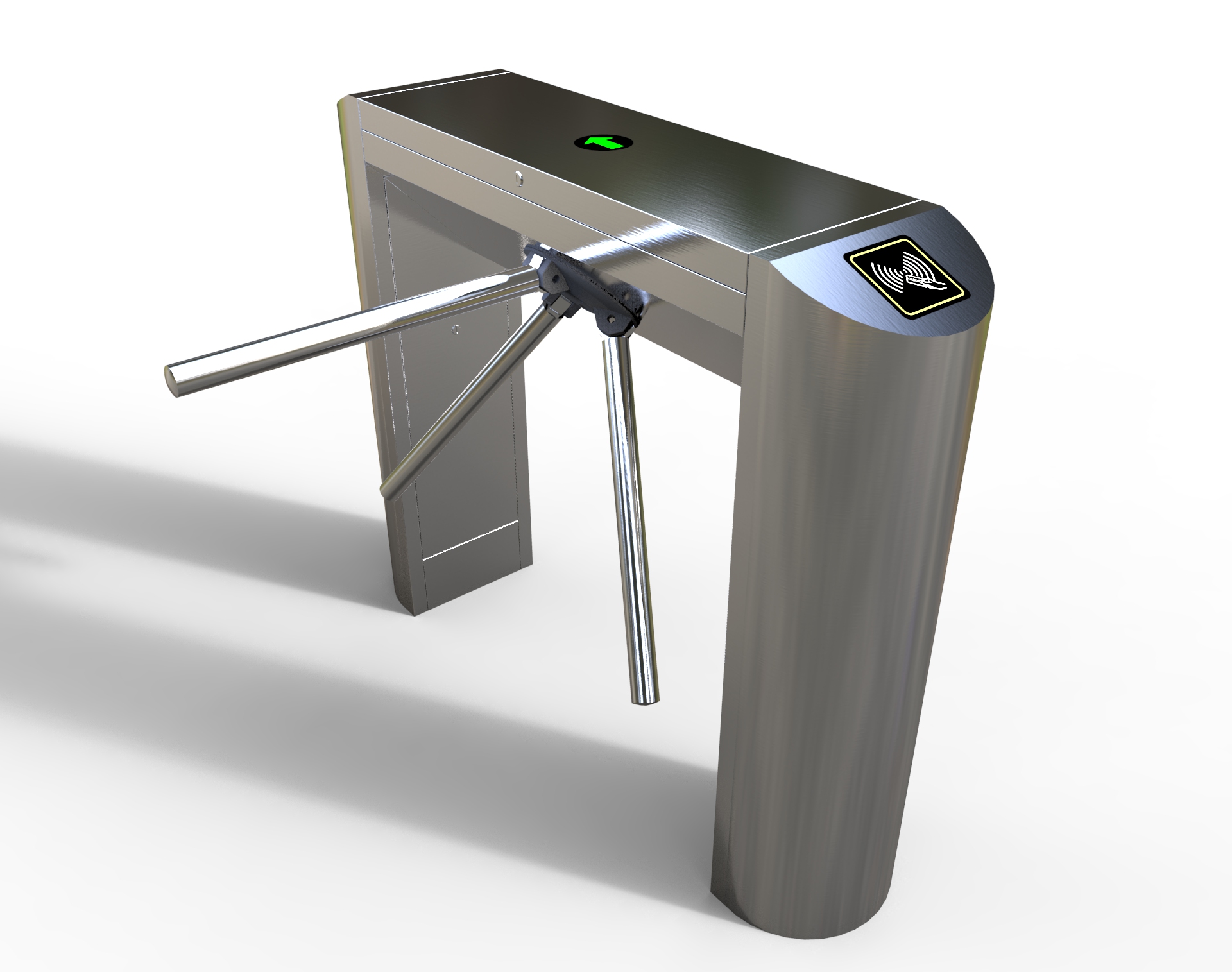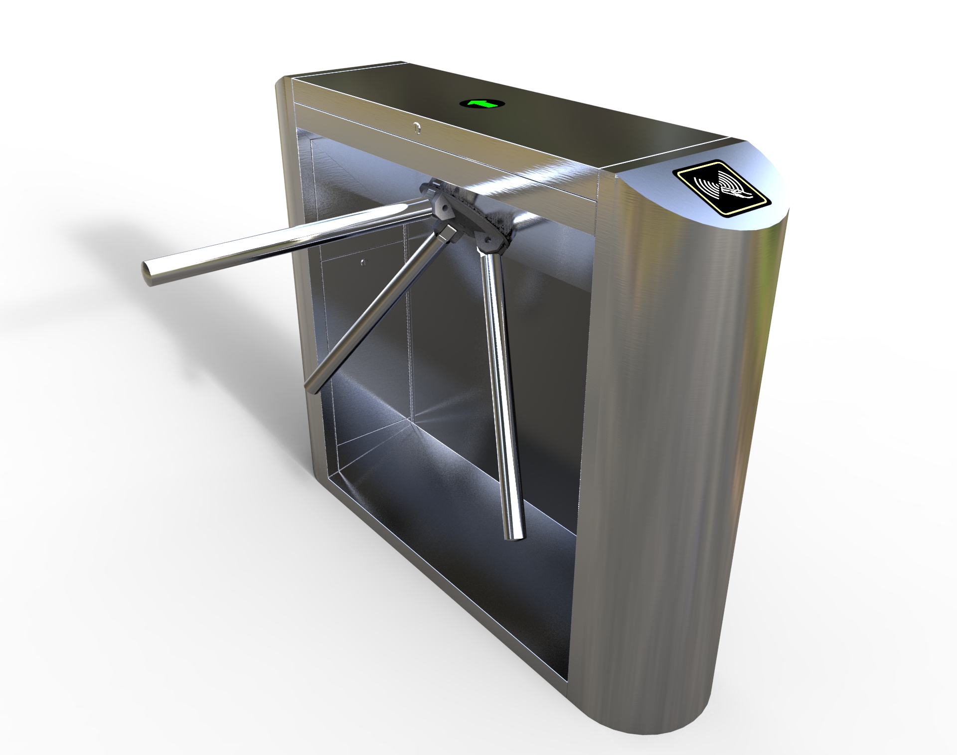整個三輥閘產品外形采用SUS304不銹鋼板沖壓成型,造型美觀大方,防銹、耐用,能抵抗外力破壞。長方形機箱與通道閘桿構成的通道可為出入人員提供有序文明的通行方式,杜絕非法出入,并在緊急情況下快速控制落桿或收桿。