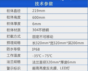 5、露出高度:600mm,柱體厚度:6mm。
